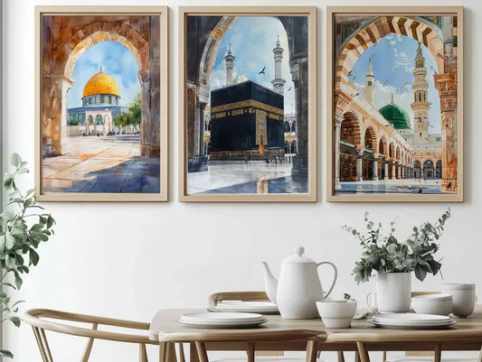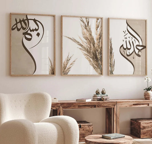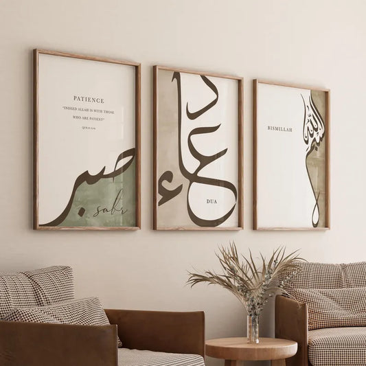 Triptyque Calligraphie Islamique – Tons Naturels & Dorés