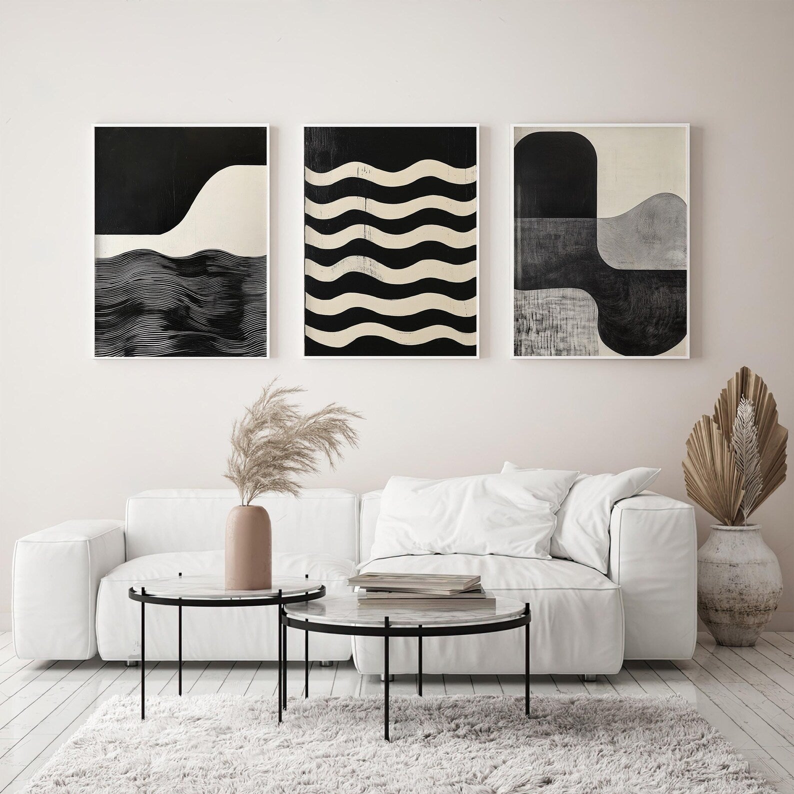 Apportez une touche d’élégance contemporaine à votre intérieur avec ce set de 3 tableaux abstraits noir et blanc au design minimaliste et sophistiqué. Chaque pièce allie formes géométriques, lignes fluides et contrastes marqués pour créer une atmosphère moderne et harmonieuse.