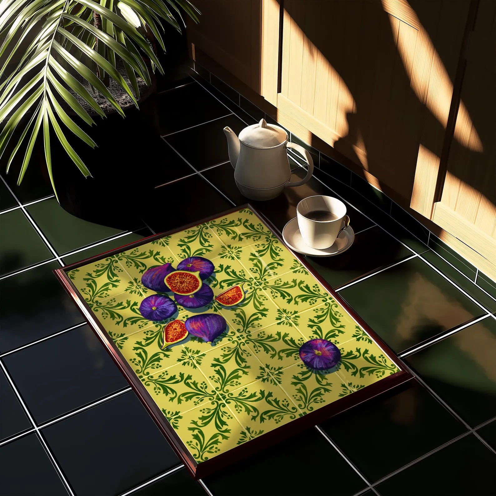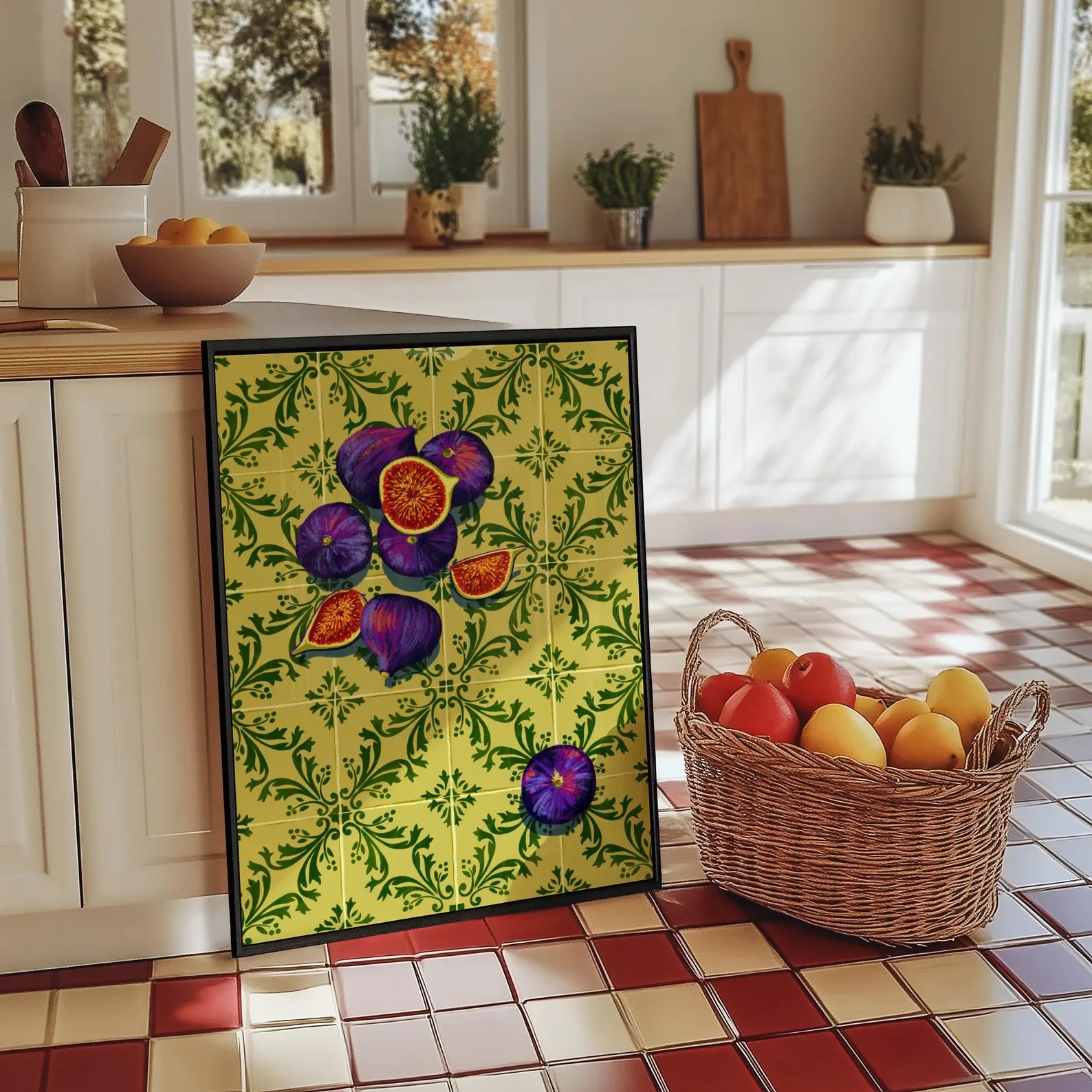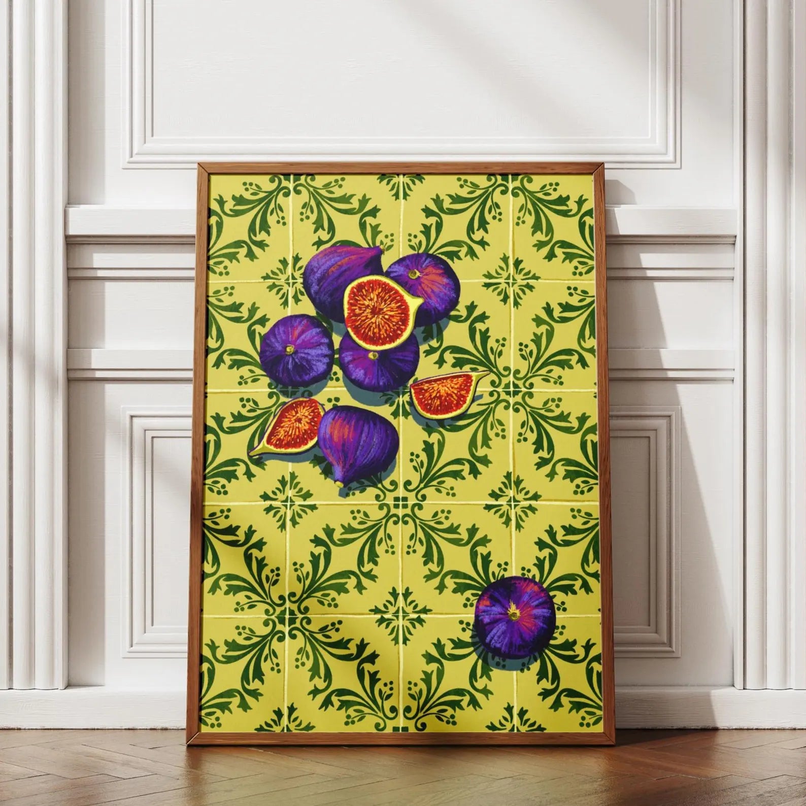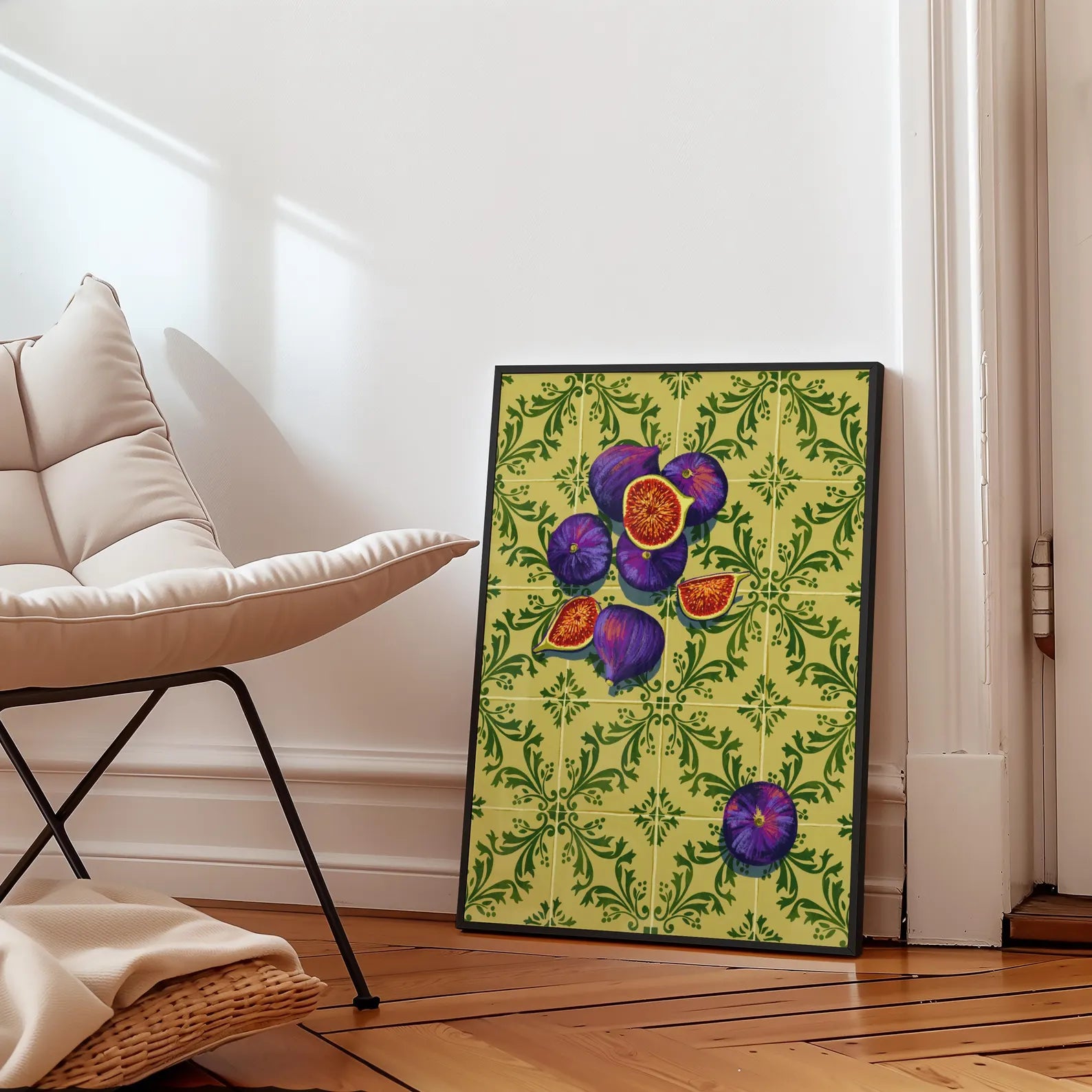 Sublimez vos murs avec cette illustration vibrante de figues juteuses déposées sur un fond jaune à motifs floraux verts inspirés des zelliges marocains. La richesse des tons violets et orangés contraste harmonieusement avec l’arrière-plan ensoleillé, créant une œuvre aussi gourmande que décorative.