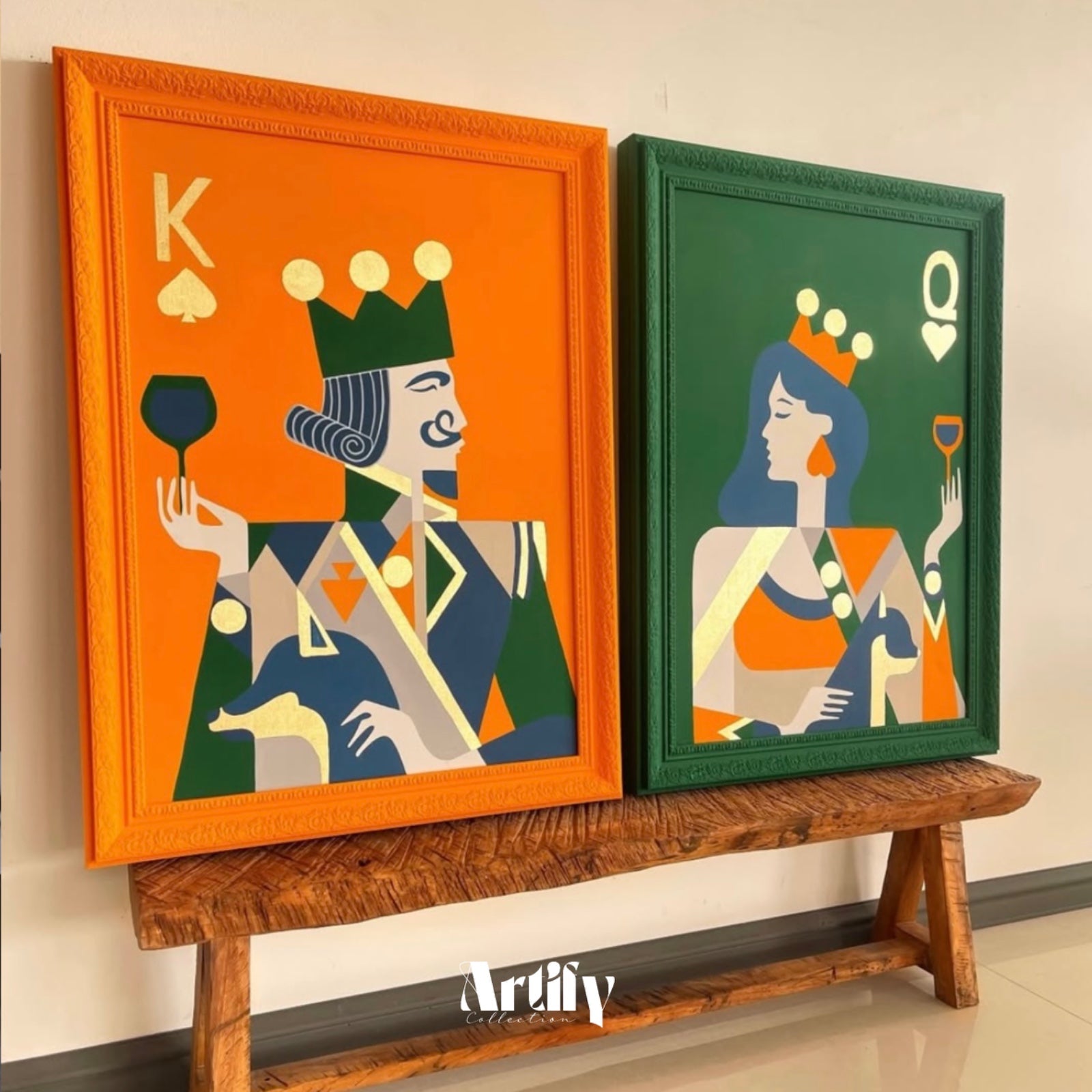 Deux regards, deux postures… une seule énergie. Le Roi et la Reine se tiennent face à face, calmes, puissants et équilibrés, incarnant la noblesse dans sa version la plus épurée.
