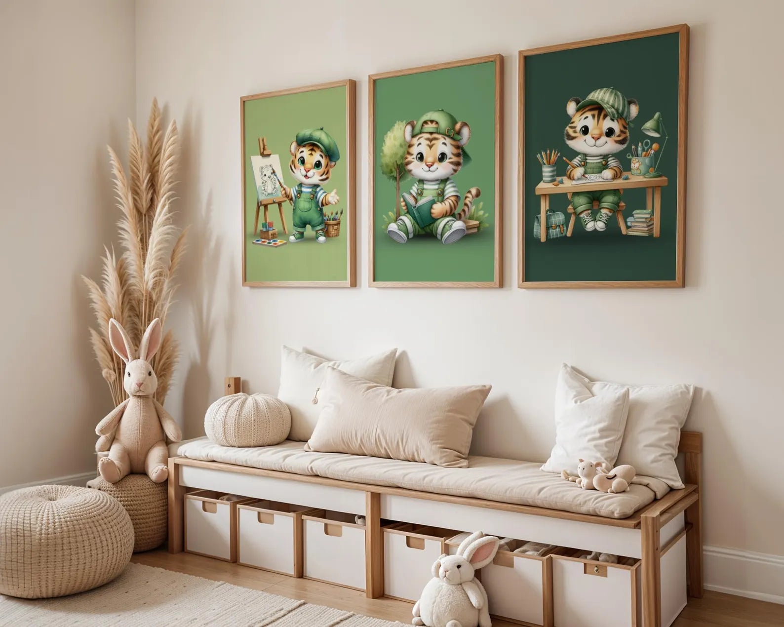 Les tons verts apaisants se marient parfaitement avec des intérieurs modernes, scandinaves ou ludiques, tout en stimulant l’imagination des enfants. Imprimés sur toile de haute qualité et soigneusement encadrés, ces tableaux apporteront charme, couleur et bonne humeur à l’espace de vie des plus petits.