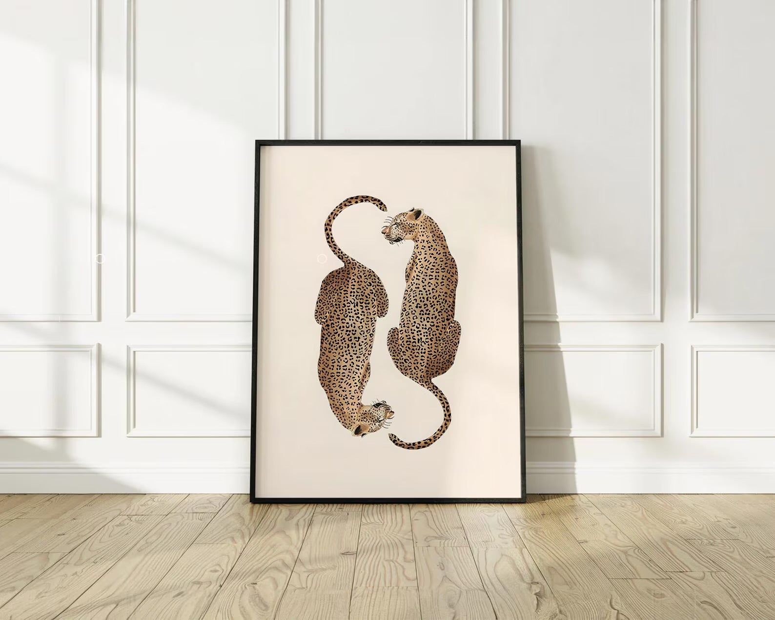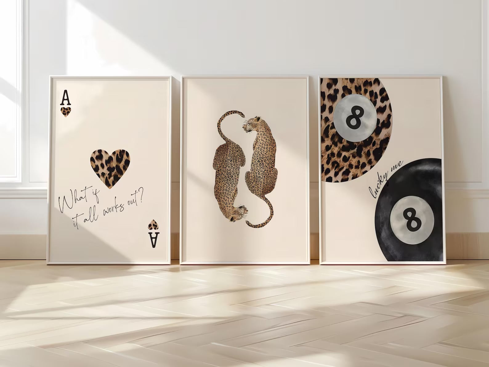 Affirmez votre style avec ce trio félin à l’énergie unique. Entre le symbole du cœur sauvage, les panthères miroir et les boules 8 léopard, cette composition insuffle confiance, mystère et un soupçon de chance à votre intérieur.